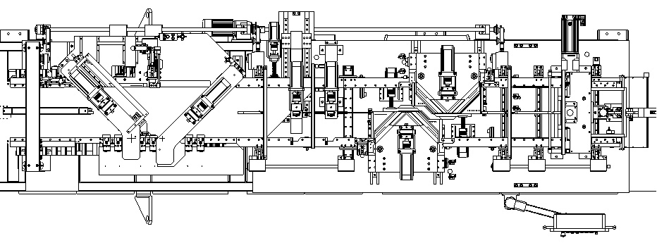 本機采用兩剪四沖(1座45°直刀+1座-45°直刀+2座V沖+2座沖孔),沖剪方式如下:一個沖剪周期完成變壓器鐵芯一層硅鋼片的加工,經過理料平臺進行分別碼垛,最終形成一個變壓器的5個鐵芯柱子。